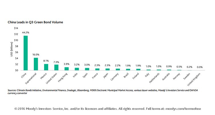 Come ultimo spunto vi segnalo quest’altra notizia rilanciata da Moody’s: la Cina, sempre lei, guida la classifica delle emissioni di green bond nel mondo.