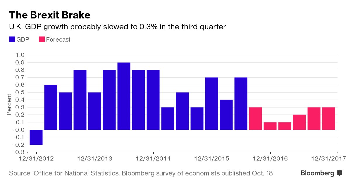 Lo sport del giorno è battere gli analisti, ossia lorsignori che prevedono sapendo che sbaglieranno, ma comunque vendendole care le loro previsioni, cosicché si possa batterle con maggiore soddisfazione. Una perfetta situazione win win. Comincia il Regno Unito, oggi sotto esame già all’alba per l’atteso dato trimestrale sul pil. Attesa febbrile dopo il referendum di giugno. Bloomberg pubblica questa previsione: