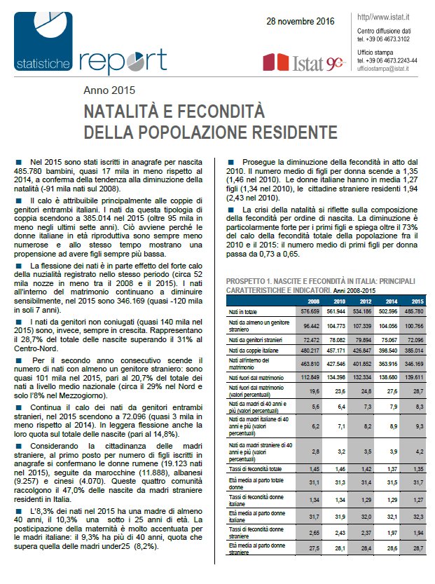 Numero del giorno: 17.000. I bambini italiani in meno nati nel 2015 rispetto al 2014