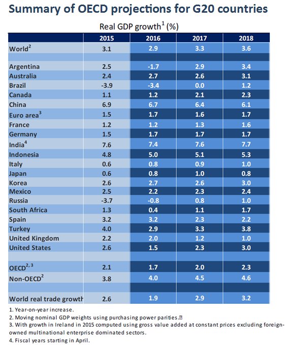 San Donald facci la grazia. Apri il borsellino e facci ridere, almeno un po’, visto che il periodo è triste e le prospettive funeste. Amen. Ci credono talmente quei pagani dell’Ocse al potere taumaturgico di Mister T. che hanno addirittura fatto un disegnino votivo in occasione della presentazione odierna dell’ultimo Global outlook