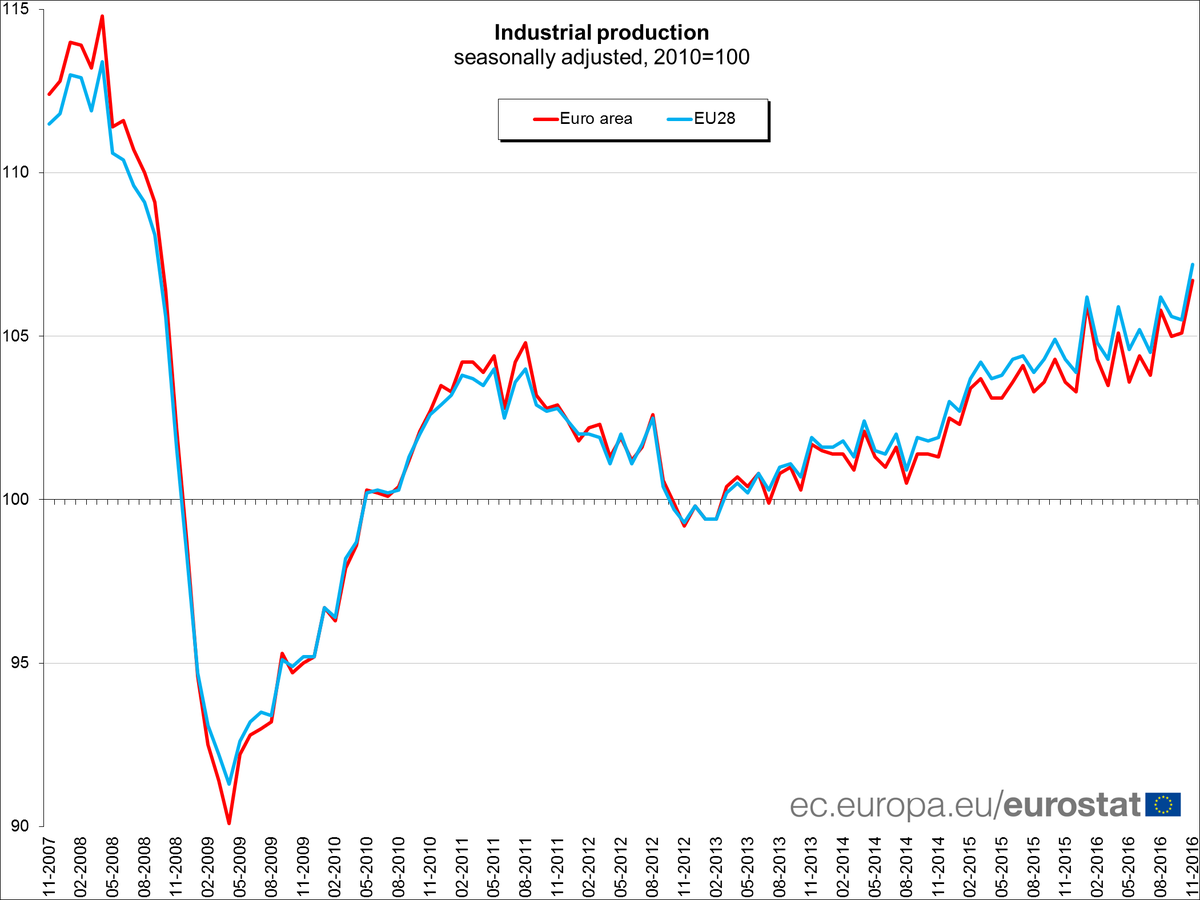 E una volta tanto alla festa ci siamo anche noi italiani, che siamo in media su base annua anche se solo a +o,7 su base mensile. Quisquilie e pinzillacchere. Oggi la notizia del giorno è l’Europa, altro che Trump.