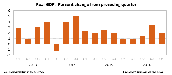 Questo risultato mesto ha portato gli Usa a chiudere il 2016 con una crescita reale dell’1,6%, in pratica al livello della Germania, a fronte del 2,6% del 2015 che già faceva storcere il naso. Mi figuro Mister T che guance rubizze. Anche perché gli statistici spiegano in plain english, come si dice, che il grosso del danno sulla crescita moscia degli Usa è arrivata dal commercio estero, andato maluccio a causa di un notevole calo dell’export e aumento dell’import, e in parte dalla spesa del governo.
