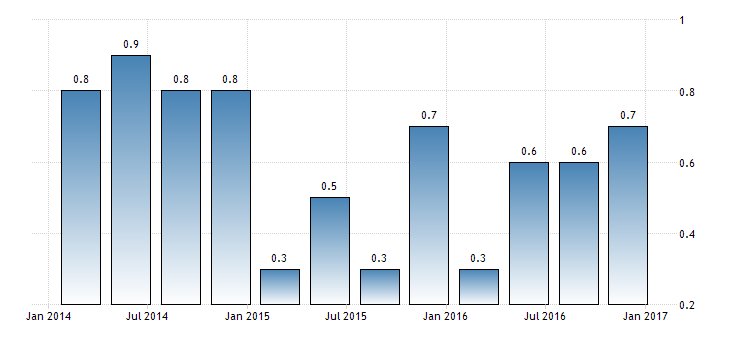 Dai diversamente europei arriva un’altra notizia che piacerà a coloro che aspirano a diventarlo: il Pil dell’UK del quarto trimestre 2016 è stato rivisto al rialzo dello 0,1%, è arrivato allo 0,7%.