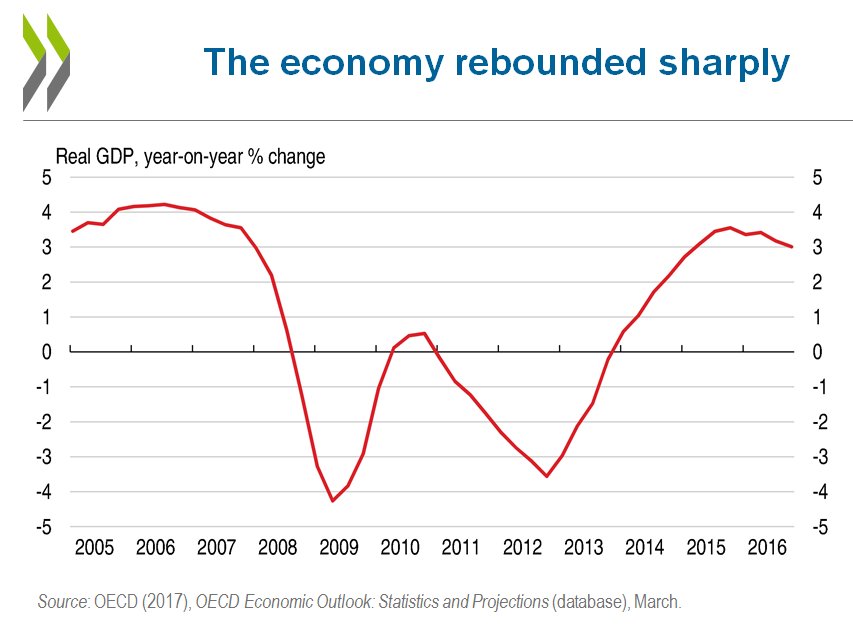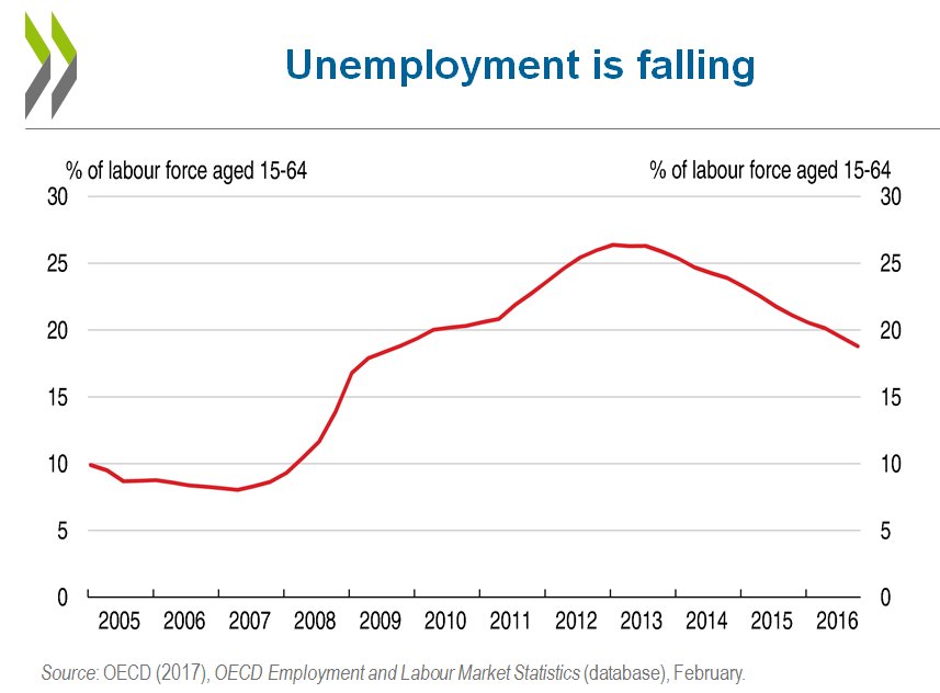 A proposito di Spagna, l’Ocse, oggi la rilasciato la sua Survey. La Spagna sta meglio di prima, ma non vuol dire che stia bene. La crescita è ripartita