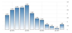 L’inflazione, quindi, che notoriamente non esiste (semicit.) perché al massimo è inflazione indotta dall’aumento dei prezzi energetici. Sarà. Intanto però l’indice dei prezzi al consumo tedesco, cresciuto del 2,2% a febbraio 2017 sul 2016, mostra questi andamenti.
