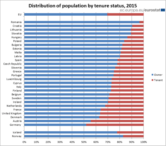Ed eccoci qua, noi europei. Il 70% in media ha una casa di proprietà, con noi italiani una volta tanto sopra la media e i tedeschi, chissà perché fanalino di cosa. Ma che i rumeni siano oltre il 90% è una vera sorpresa. Almeno quanto quella che il tedesco sia la terza lingua più studiata in Europa.