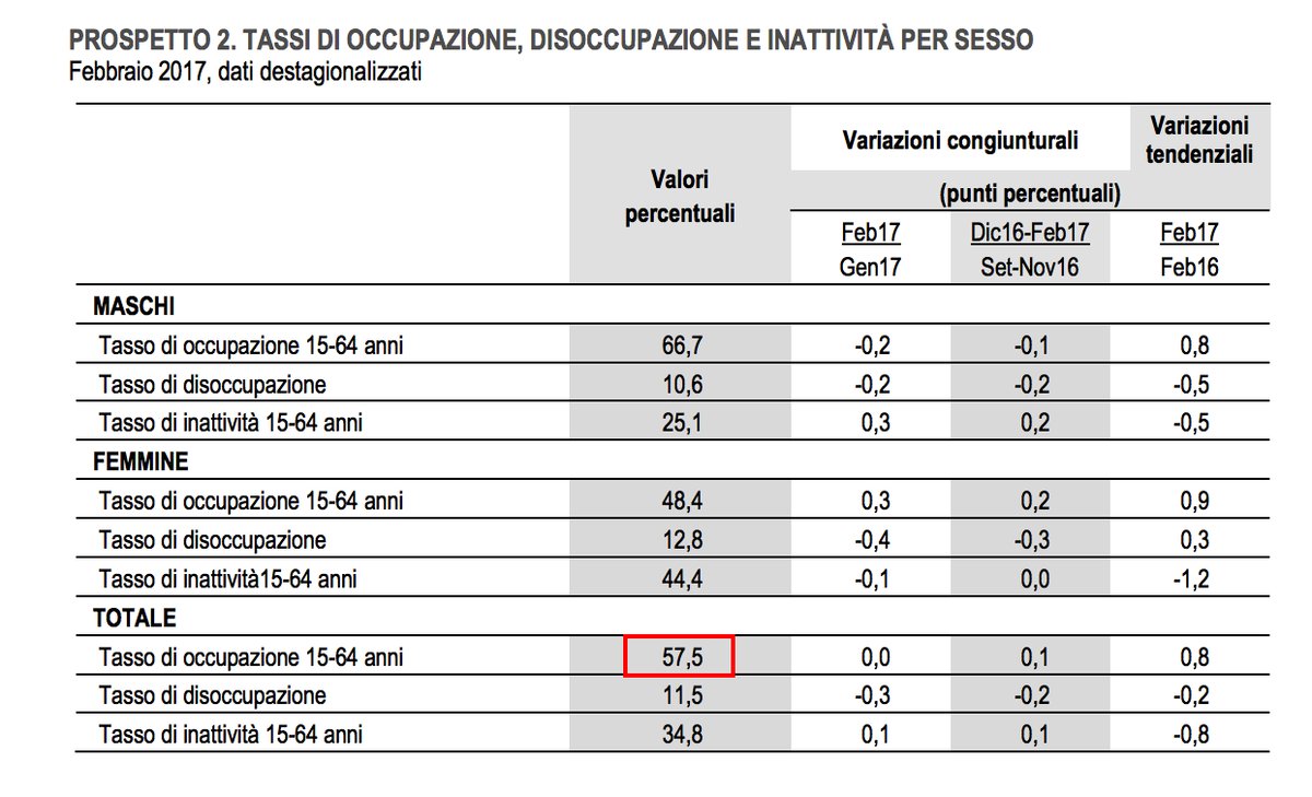E infine il nostro tasso di occupazione, fra i più bassi d’Europa.