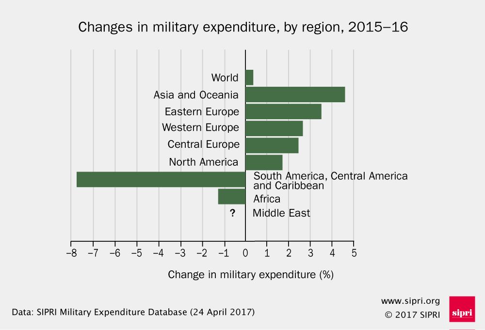 Nel caso vi fosse sfuggito – e visto che il tema di oggi è l’estinzione felice – vi segnalo che il Sipri ha rilasciato il suo ultimo aggiornamento sul mercato delle armi nel 2016, da dove si evince il notevole incremento della spesa militare dell’Europa, con l’Italia a dare un robusto contributo.