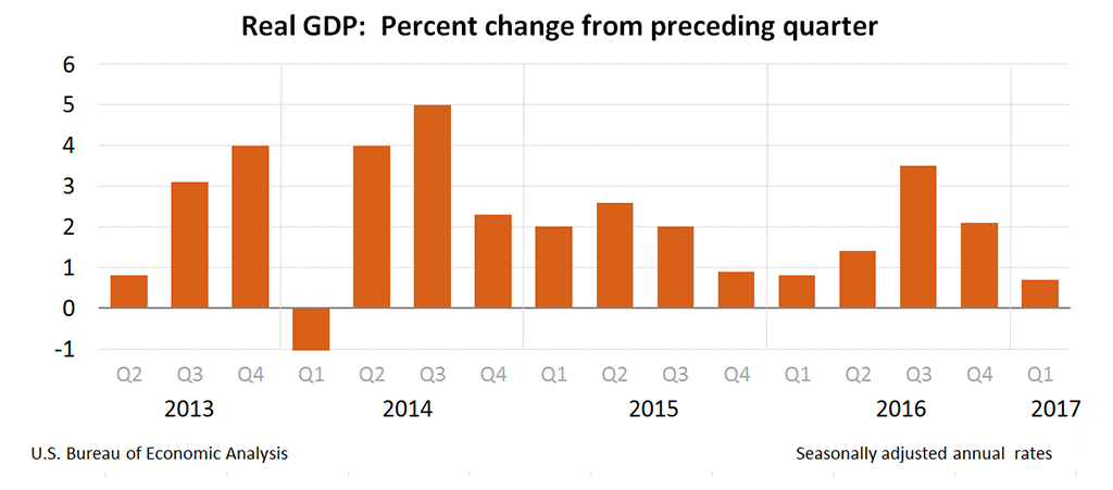 Ci dice che il primo quarto è andato così così: un più 0,7%, meno dle primo quarti 2016 e ancor meno di quello 2015. Ma questo in fondo sono quisquilie, anche perché il dato è solo la prima stima soggetta a revisione. La notizia interessante sta sempre nei dettagli, che ci raccontano di come in questo trimestre il pil abbia frenato a causa del rallentamento del consumo privato mentre l’export ha contribuito ad accelerare il prodotto, così come gli investimenti. Insomma, la corporation USA si è intonata agli umori del suo comandante: più commercio estero e più investimenti. Certo sarà interessante osservare cosa succederà il trimestre prossimo, quando verranno digeriti gli annunci sul taglio delle tasse.