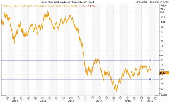 Il petrolio sta in quella confortevole fascia di oscillazione che rende assai conveniente ai produttori di shale darsi da fare perché ci guadagnano parecchio. E c’è da giurarci che da lì non si schioderà per lungo tempo. Guarda caso la Russia ha fatto sapere di non aver ancora deciso se proseguirà nel taglio della produzione concordato con i paesi Opec alla fine dell’anno scorso. Sarà mica che non ci rientra con questi prezzi?