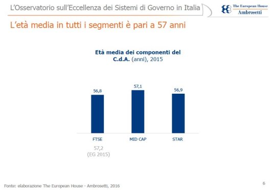 Infine una nota di colore: In Italia l’età media dei partecipanti ai consigli di amministrazione è…