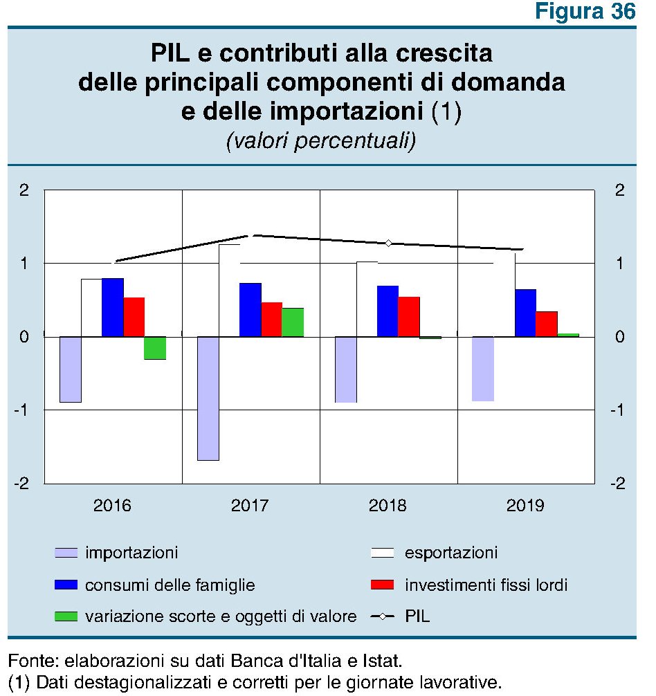 L’istogramma bianco, quello invisibile, è quello che pesa e si chiama export. La domanda delle famiglie rimane inchiodata con tendenza al ribasso, mentre gli investimenti, che poi di solito creano occupazione, sono persino visti in calo.