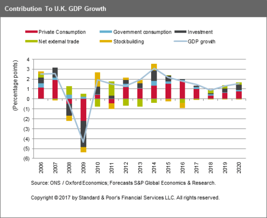 L’aria che tira in Uk. Il tempo volge all’incerto per l’economia britannica, alle prese con previsioni poco rassicuranti che arrivano dagli osservatori. L’ultima arriva da Standard&Poor. L’agenzia di rating nota che il paese, pure se ha superato brillantemente le fosche previsioni degli economisti all’indomani del referendum, adesso mostra segnali di rallentamento. La disoccupazione di recente ha segnato un suo minimo da quarant’anni a questa parte, ma questo non basta a dissipare le nubi sulla domanda domestica, che si vede al ribasso e che neanche l’export netto, incoraggiato dalla svalutazione della sterlina riesce a compensare.