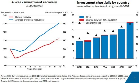 E come si può vedere sono state quasi tutte riviste al rialzo con l’eccezione non indifferente di USA e UK. Il problema è che molte situazioni che zavorrano l’economia rimangono ancora irrisolte. A cominciare dal livello di investimenti privati, ancora basso