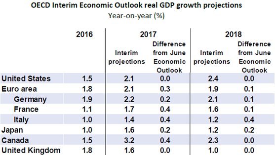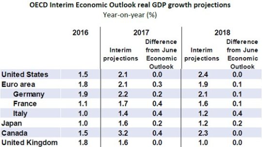 Due o tre cose che l’Ocse ci fa sapere. L’Ocse ha rilasciato le sue previsioni per quest’anno e il prossimo che sono buone, almeno nel breve periodo, ma meno buone se guardiamo alla sostanza dei problemi ancora irrisolti che gravano sulle prospettive di una crescita robusta. I dati sulle previsioni sono questi in tabella.