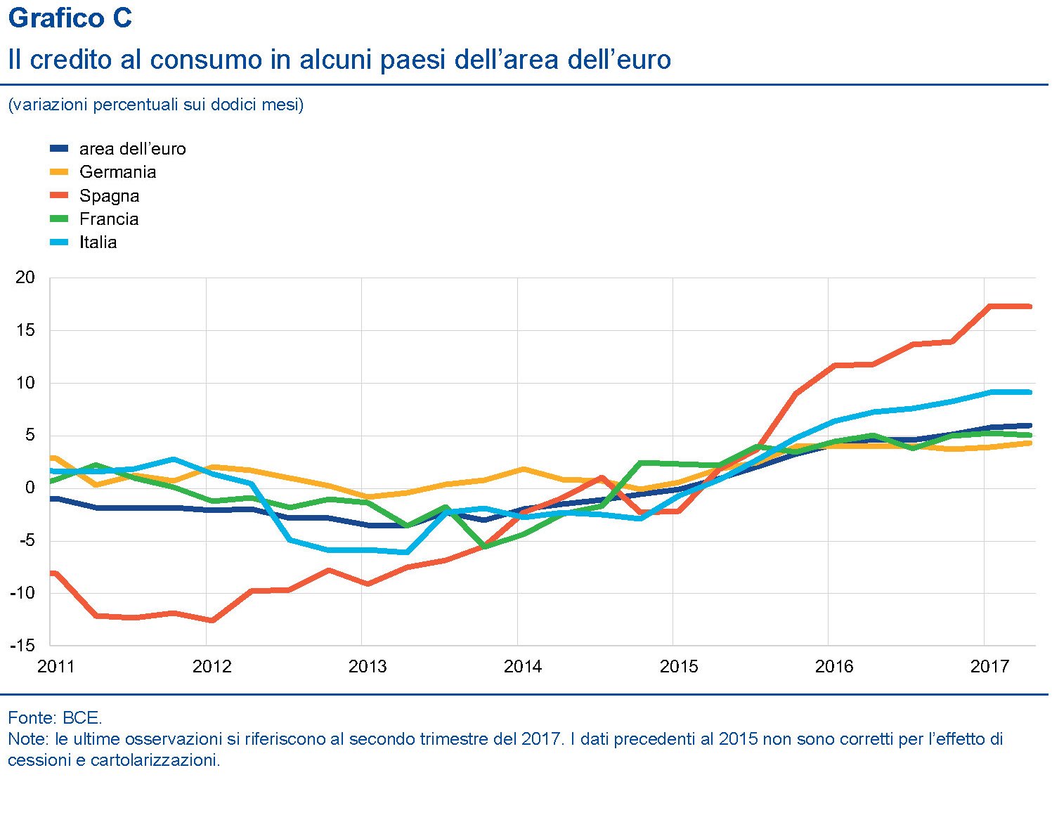 In Italia la crescita è ben lontana dal livello spagnolo, dove il credito al consumo sta crescendo a due cifre. Le famiglie italiane rimangono più prudenti, ma meno di prima.