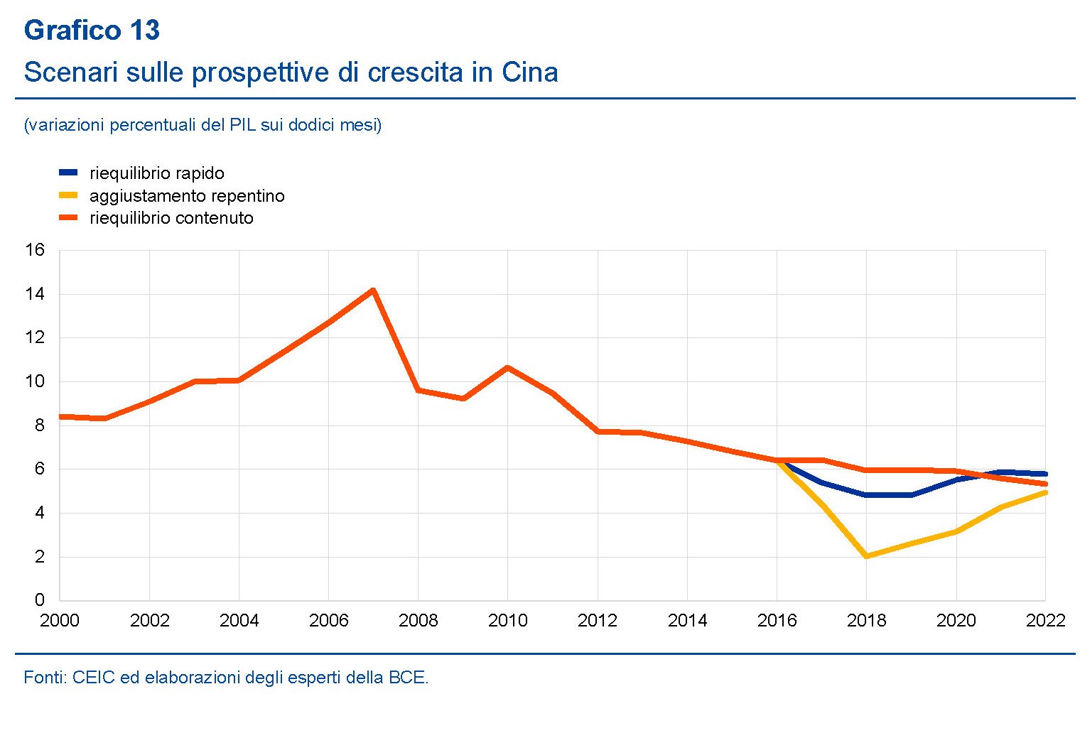 La Bce riconosce che “nonostante l’accentuarsi delle vulnerabilità, la Cina mantiene margini di manovra per assorbire potenziali shock avversi. La Cina vanta un consistente risparmio nazionale, ampie riserve valutarie e un avanzo delle partite correnti che contribuiscono a metterla al riparo da crisi sul fronte del finanziamento