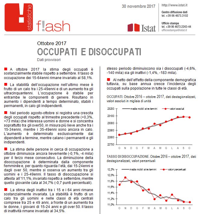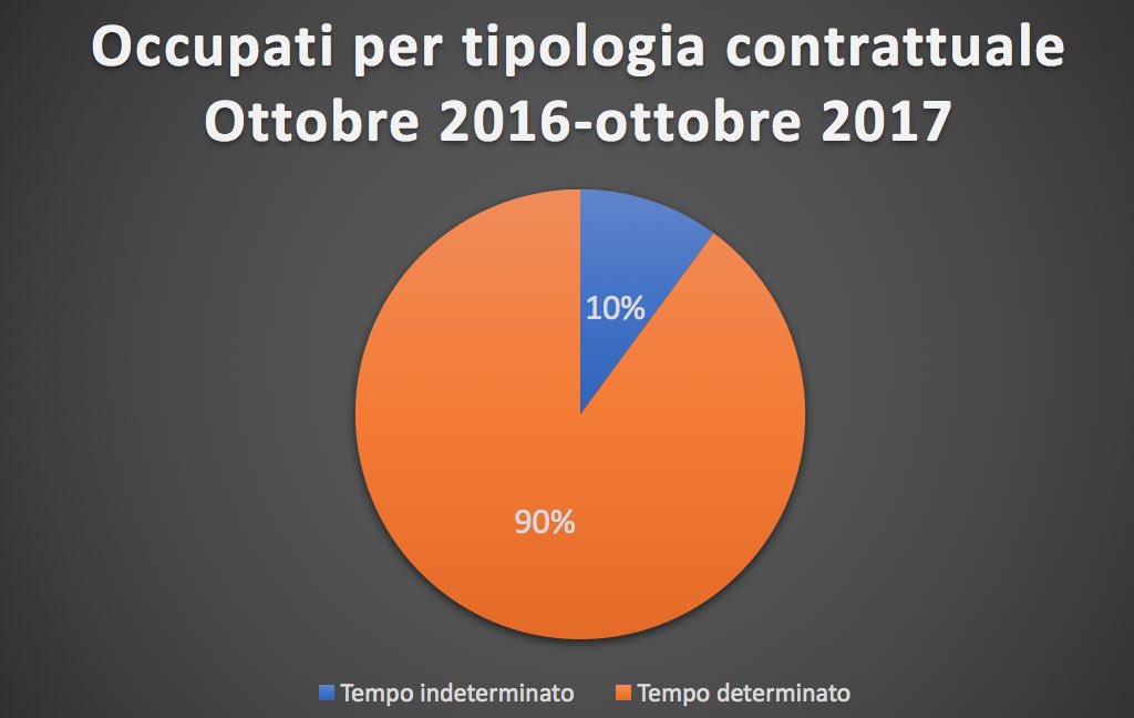 Niente panico: questo è il Cronicario mica una roba pallosa. Peraltro queste due statistiche sono uscite a un giorno di distanza l’una dall’altra, ma purtroppo l’abitudine che abbiamo a guardare la realtà con un occhio solo ci impedisce spesso di osservare fenomeni complementari. Allora, la prima statistica è uscita oggi e riguarda l’occupazione: Grande Tema.