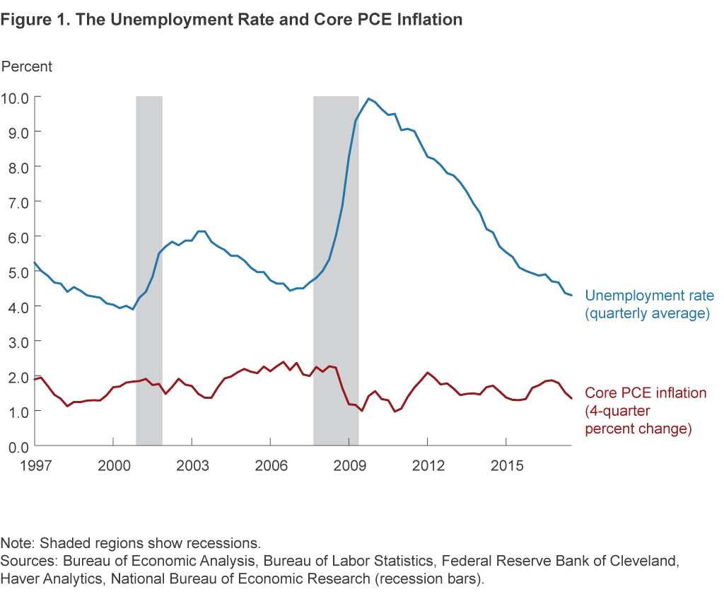Per svelare il mistero invece è stato costruito un modello che costruisce due set di dati di previsioni. La prima basata sul comportamento più recente dell’inflazione e del tasso di disoccupazione. Nel secondo set di dati invece si presume che l’inflazione sia governata dai fattori già visibili nei tardi anni ’90, quando sia la disoccupazione che l’inflazione erano basse, pure se ancora le dinamiche inflazionistiche non erano sensibili alle conseguenze della globalizzazione e della tecnologia (si pensi al commercio elettronico ai giorni nostri) come lo sono oggi. Sulla base di questi assunti sono state tratte delle previsioni per i prossimi tre anni.