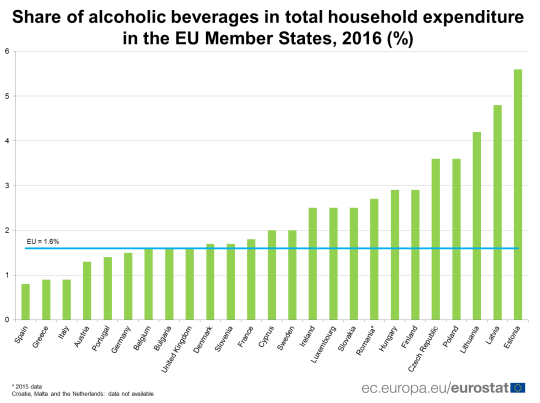 Ora non fate della facile ironia collegando il rinnovato entusiasmo economico di queste ultime settimane, con gli indici di fiducia che volano in alto come i vostri scoperti bancari, semplicemente perché Eurostat si è premurata di farci sapere che nel 2016 ci siamo bevuti, come europei e al netto di ristoranti e hotel, 130 miliardi di euro di cicchetti.