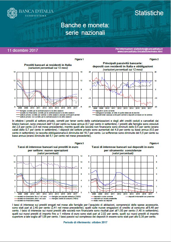Maddai, ma chi ci crede. C’è gente che fa la fila per comprarsi i bitcoin, figuratevi. Poi però esce un’altra notizia da lunedì, stavolta da Bankitalia. E cosa dice? Che sempre a ottobre le sofferenze lorde sono aumentate di un’anticchia, dai 173 di settembre a 173,8 miliardi. Ma non preoccupatevi: su base annua le sofferenze sono scese del 5,5%, comunica senza indugio la Banca d’Italia.