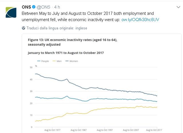 Oggi che è una giornata meravigliosa, in cui l’occupazione europea cresce come la produzione industriale – quella italiana di auto persino dell’11,7 a ottobre – e Calenda ed Emiliano se le suonano su Twitter per la storia dell’Ilva, facendoti sognare una vera classe politica, e Confindustria aumenta la stima del pil per il 2018 all’1,5%, mentre paventa i rischi di caos post elettorale, e nel Regno Unito si verifica un altro miracolo statistico, per cui l’occupazione cala insieme con la disoccupazione…