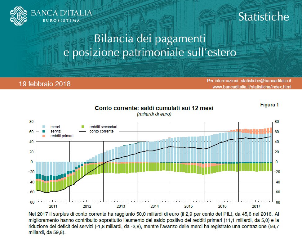 Per fortuna buone nuove arrivano da Bankitalia, che ha pubblicato gli ultimi dati sulla bilancia dei pagamenti e la posizione estera.