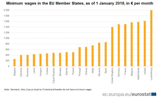 Numero del giorno: 1.999 Salario mensile minimo in euro in Lussemburgo