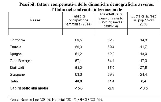 Compensare queste dinamiche demografiche avverse non è per nulla semplice. Bankitalia individua tre strumenti: aumento dell’età pensionabile, aumento della partecipazione delle donne al lavoro, aumentare la dotazione di capitale umano e per avere maggiore efficienza e quindi produttività. Purtroppo, “sotto questi tre profili – partecipazione femminile, età effettiva di pensionamento, grado di istruzione della forza lavoro – l’Italia si colloca su livelli nettamente inferiori alla media dei principali paesi avanzati”.