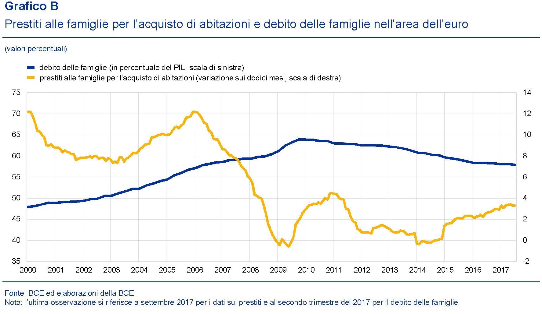 misura crescente dall’aumento del reddito delle famiglie” supportata anche dall’aumento dei prestiti per l’acquisto delle abitazioni che ha superato il 3% su base annua a fine 2017. A ciò si è aggiunto il calo dell’indebitamento delle famiglie, arrivato al 58% del pil nel terzo trimestre 2017.