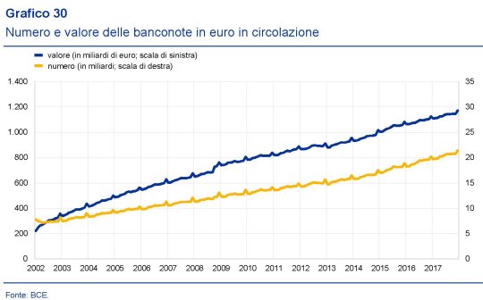 “Si stima – riporta il rapporto – che, in termini di valore, circa un terzo delle banconote in euro in circolazione sia detenuto al di fuori dell’area dell’euro. Si tratta soprattutto dei tagli maggiori, che sono detenuti principalmente nei paesi confinanti e sono utilizzati come riserva di valore e per il regolamento delle transazioni sui mercati