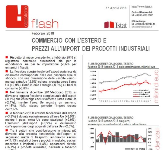 A proposito di commercio. Sono usciti i dati Istat sul commercio estero italiano che sono la cartina tornasole del clima che si addensa sulla nostra testolina senza capo (di governo).