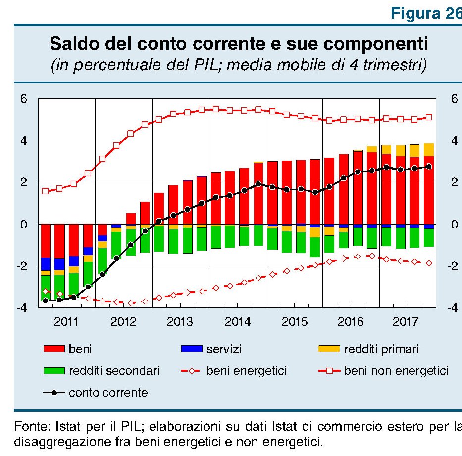 L’ultimo bollettino economico di Bankitalia contiene un interessante aggiornamento sulla nostra contabilità che conferma non solo il buono stato di salute dei nostri conti con l’estero, ma anche il trend iniziato nel 2014, quando i capitali italiani hanno iniziato la loro migrazione fuori dai confini nazionali, spinti dalla fame di rendimento e anche dalla crescita del surplus delle partite correnti, ossia del saldo degli scambi con l’estero.