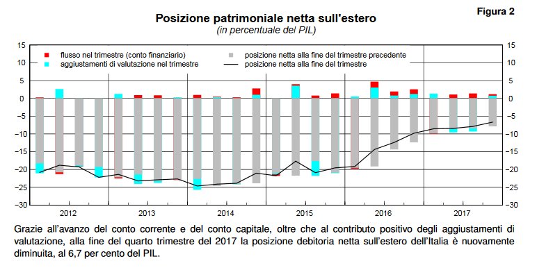 E poiché siamo in vena di ottimismo, vi saluto con gli ultimi dati sulla nostra bilancia dei pagamenti, e in particolare l’andamento della nostra posizione netta, che misura in sostanza come stiamo messi coi debiti esteri.