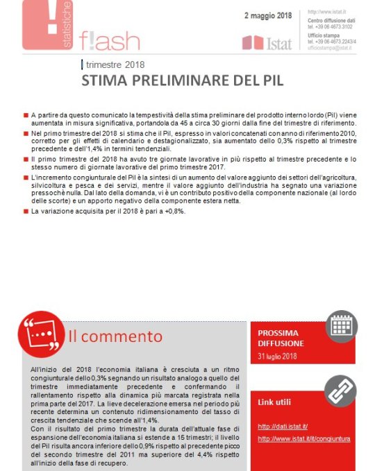 Stiamo rallentando, ma pazienza. Andremo sani e chissà quanto lontano, ma intanto sappiate che pure se facessimo crescita zero per il resto dell’anno avremmo comunque un +0,8 nel 2018 e che il grosso della nostra buona salute (si fa per dire) dipende dalla domanda interna, visto che l’export netto non ha portato nulla sulla crescita nel trimestre il che non è certo un buon viatico per il futuro. Consolatevi pensando che siamo in crescita da 15 trimestri, anche se siamo sotto il livello del 2011. E poi pensando che stiamo entrando nel primo trimestre senza governo, che meriterebbe una contabilità analitica a parte.