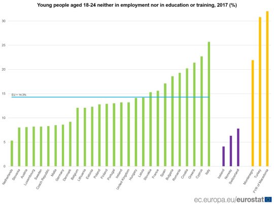 Avete letto bene. NEET non è un refuso, ma un acronimo anglofono che sta per persone che non studiano né lavorano. Quindi giovani italiani – uno su quattro – che stanno impiegando gli anni migliori della loro vita per fare la cosa migliore che si possa fare nella vita.