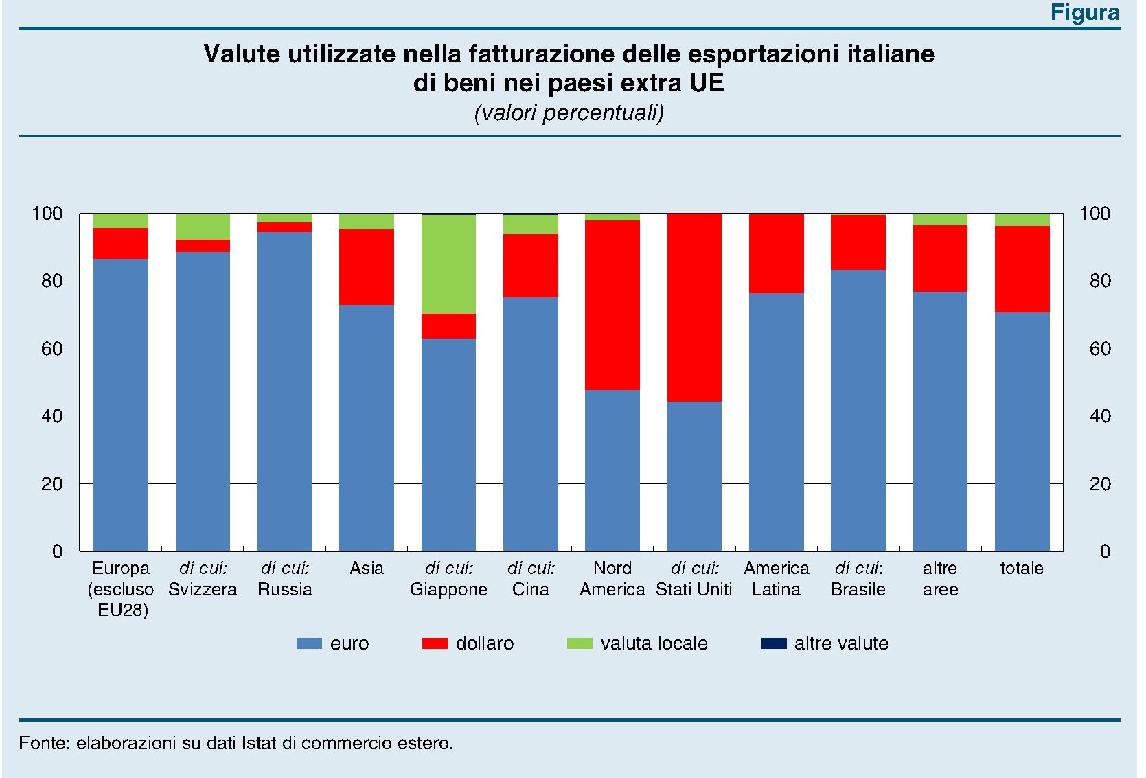 La competitività di prezzo rimane un fattore importante per l’Italia – pesa più di quanto pesi per la Francia e la Germania – e la grande quota di piccole aziende non la favorisce. Le stime di Bankitalia mostrano che gli esportatori di dimensione maggiore sono più bravi sui mercati esteri non solo perché hanno capacità di fronteggiare la concorrenza, ma anche perché riescono a gestire meglio le fluttuazioni del tasso di cambio. E’ poco noto, ad esempio, che molte aziende italiane fatturano in valute diverse dall’euro le proprie esportazioni, a volta anche in maniera rilevante. Negli Usa, ad esempio, oltre il 55% dell’export italiano è fatturato in dollari.