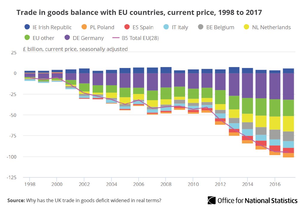 Sapete tutti che sta capitando in UK, e non è educato infierire. Il governo è inguaiatissimo, l’economia scricchiola e dall’esito del referendum sulla Brexit non è migliorata. Proprio oggi l’istituto di statistica britannico ha fatto notare come il deficit commerciale, che trumpianamente, ha nutrito molte delle rimostranze contro l’Ue è aumentato costantemente negli ultimi vent’anni,