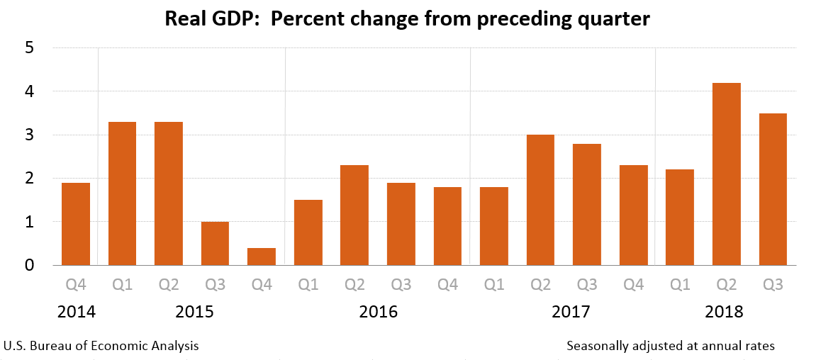 Il dato, ancora provvisorio, sulla crescita Usa nel terzo trimestre ci comunica parecchie informazioni che consentono di farsi un’idea chiara di come stia evolvendo l’economia americana nel suo secondo anno di epoca Trump. Dato lusinghiero, peraltro, visto che il 3,5% di pil registrato in più, conferma, anche se al ribasso, l’ottimo +4,2 del secondo trimestre: un momento espansivo che non si registrava da parecchi trimestri.