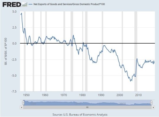 I motivi ovviamente sono diversi. Ad esempio, “quando l’economia va bene, i produttori hanno bisogno di più beni intermedi e l’import è per lo più costituito da beni intermedi. La tempo stesso le famiglie consumano di più e una quota di tale consumo è costituita da importazioni”. L’export invece dipende dalla situazione internazionale e solo indirettamente dall’attività interna. Detto in altre parole, lo stimolo fiscale di Trump fa bene al’economia Usa, ma anche alle importazioni, mentre non è detto che farà bene al commercio estero netto. Anzi, finora sembra il contrario. In sostanza, crescendo gli Usa importano di più ma non è detto che esportino di più, specie se i dazi fanno salire i prezzi interni. Alla fine dello stimolo fiscale l’economia potrebbe rallentare, a fronte di un robusto aumento dei debiti. E anche questo ha un costo.
