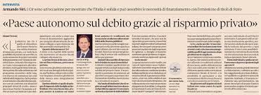 E che dirà mai? Presto detto: “Il risparmio privato – e non solo – non può venire sacrificato sull’altare del debito pubblico”. Anzi “è innanzitutto responsabilità del Governo di non mettere a rischio il risparmio degli italiani”.