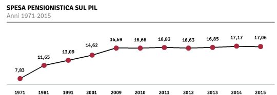 Mettetevi seduti che è roba grossa perché l’idea geniale riguarda le pensioni, ossia la nostra fissazione nazionale che ci costa uno sproposito. Se non ci credete guardate questo grafichetto pubblicato da Istat un paio di anni fa.