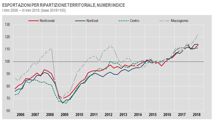 Sa cosa c’è, che la prima voce di esportazione di una delle più importanti regioni meridionali la Puglia, è ancora oggi, nonostante tutto, l’acciaio dell ‘Ilva. ILVA che inquina al sud, ha sede legale a Milano, ed è controllata da un gruppo Franco Indiano. Poi abbiamo Alenia a Foggia e Grottaglie, Gruppo Leonardo Finmeccanica sede legale Roma, Via Laurentina, contrallata del Min. Economia. Il Sud, di suo, non esporta nemmeno un bottone ! Il suo è un classico caso di paradosso di Simpson.I grafici come chimere. IL Mezzogiorno non solo E’ POVERO, DISGRAZIATO e MALE AMMINISTRATO ma ha un reddito procapite del 45% inferiore al Nord. E la forbice si sta ulteriormente allargando. Quei territori desertificati dalla sempre maggiore emigrazione giovanile, oggi soprattutto qualificata. La prossima volta, la cartolina la scriva dopo esserci stato, al Sud. Così poi il grafico le verrà meglio.