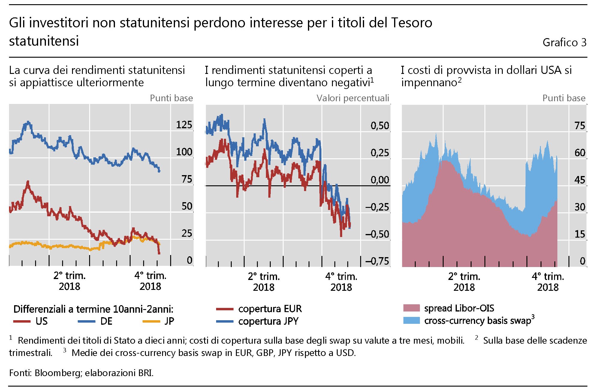 E così, sul finire del 2018, complice la Fed che ha smesso di comprarne, ma anche i capitali esteri che cercano fortuna altrove, il Treasury Usa ha perso d’appeal. Alcuni volenterosi hanno calcolato che la Fed abbia fatto dimagrire di un robusto 5% la sua quota di titoli del Tesoro Usa sul totale delle proprie attività, che ormai pesano solo il 15% del bilancio della Banca centrale. Similmente hanno fatto i gestori del settore ufficiale estero, ossia i gestori di riserve delle banche centrali, che hanno venduto un 2% delle consistenze, arrivando a detenerne ormai circa il 26. Poi ci si è messo il mercato. La curva dei rendimenti del Treasury si è invertita ai primi di dicembre, con il quinquennale a rendere meno del biennale. Segnale nefasto, che gli aruspici delle borse rifuggono come il volo dei corvi. E siccome nel magico mondo dei mercati chi perde appeal viene venduto, è finita che il bond Usa, in questo scorcio di 2018, somiglia a una vecchia star dalla quale rifuggano anche gli ammiratori più collaudati, in questo caso europei e giapponesi, che per decenni ne hanno finanziato i vizi. Il Treasury sbiadisce e si sgretola, lasciando sul tappeto una malinconica polvere di stelle.