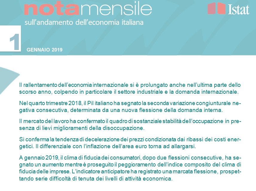Se fossimo maligni come il noto notiziario, diremmo che la produzione è franata. Ma poiché maligni non siamo, ci limitiamo a osservare che “è a rischio la tenuta dei livelli di attività economica”, come dice allegramente l’Istat nella sua nota mensile.