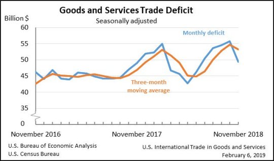 Le ultime rilevazioni del Census sul commercio internazionale Usa ci comunicano un’informazione molto interessante. A novembre del 2018 il deficit petrolifero statunitense, quindi il saldo fra le importazioni e le esportazioni di greggio si è quasi azzerato. Complessivamente ammontava circa 600 milioni di dollari, appena l’1,3% del deficit complessivo degli Usa.