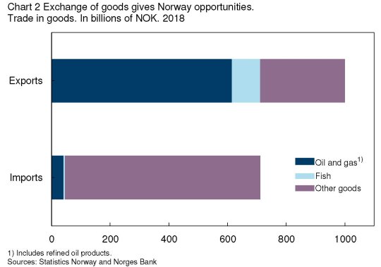 Quel che bisogna sapere della Norvegia ha il pregio di entrare in una frase incastonata nell’intervento del governatore norvegese: “Abbiamo bisogno degli altri paesi più di quanto gli altri paesi ne abbiano di noi”. La Norvegia, infatti, è un’economia aperta che esporta molto, ma poche cose, e quindi ne importa altrettante, ma di diverso tipo.
