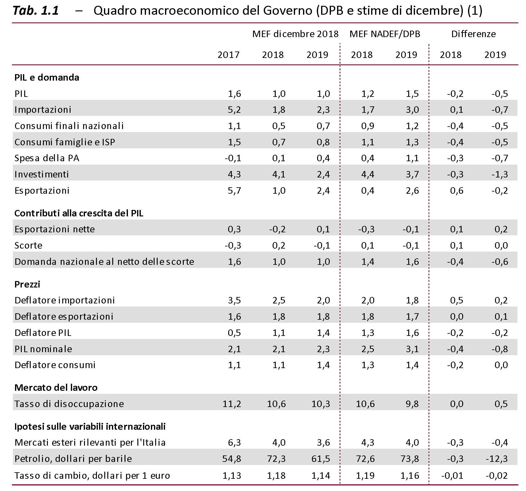 Ecco il quadro diffuso a dicembre dal governo. Dicembre 2018. Ieri insomma.