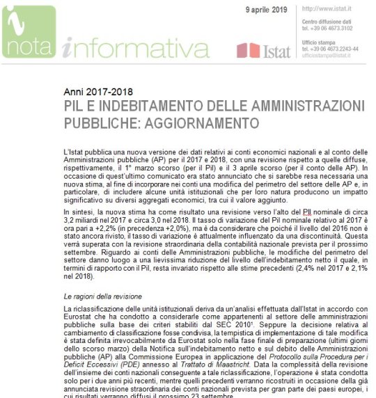 Cronicario: Finalmente aumenta il Pil (ps è quello del 2017)