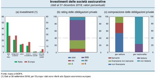 “Anche a causa del limitato sviluppo del mercato obbligazionario privato in Italia – scrive Bankitalia – i titoli pubblici in portafoglio rappresentano il 50 per cento degli investimenti complessivi il cui rischio è a carico delle compagnie, un livello ampiamente superiore alla media europea. La quota di obbligazioni private è invece inferiore a quella degli altri paesi ed è costituita prevalentemente da titoli emessi da società estere e con un merito di credito elevato”.